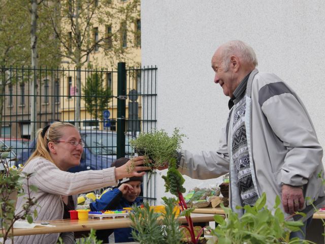 22 April 2014 the first local workshop of the German partner in the PLANT project took place in Leipzig. The first of the three public workshops in 2014 dealt with planting herbs in the garden or even at a balcony. In the backyard of the senior citizen center “Inge & Walter”, the herbalist Undine Myja from Klosterbuch and the wisamar team therefore planted different herbs in a raised bed. Among the herbs were: parsley, chives, chervil, garden sorrel, savory, marjoram, balm, pimpinella, nasturtium and also Mediterranean herbs like sage, basil, thyme, citrus thyme and rosemary.